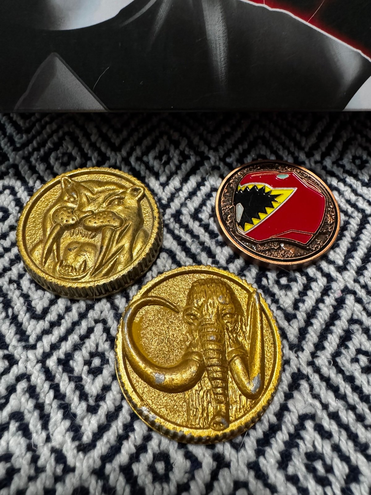 Box (in decent condition) has been opened but coins never removed. Comes with an extra Legacy Pterodactyl Coin, a Painted (gold) Sabertooth Tiger coin, a Painted Mastadon (slightly chipping) Coin, and a 2016 Power Morphicon Dino Charge Coin. Any questions just ask!